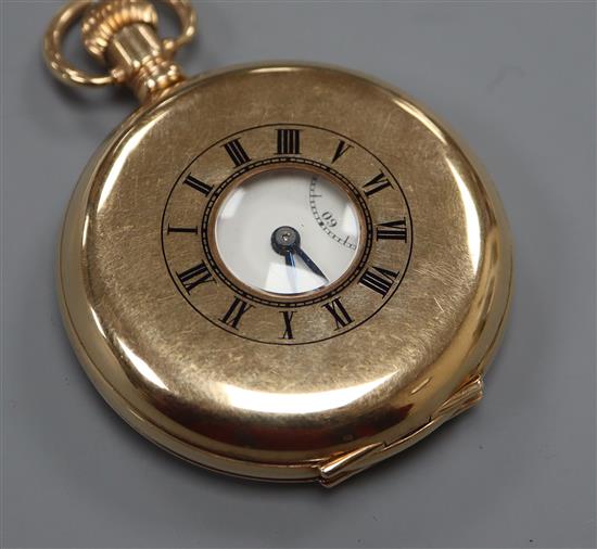 A 9ct gold half-hunter pocket watch, with Arabic dial and subsidiary seconds.
