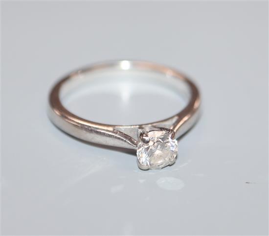 A modern 18ct white gold and solitaire diamond ring, the stone measuring 4.8mm. size K.