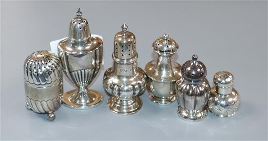Six assorted early 20th century and later silver condiments.