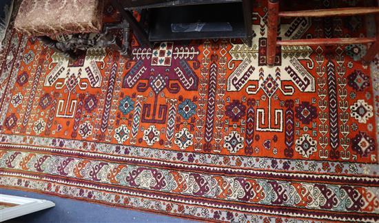 A Kazak style brick red ground carpet 250 x 170cm