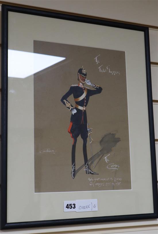 Carbine After Snaffles, gouache, "The Field Gunners The Corps", signed, 32.5 x 23cm