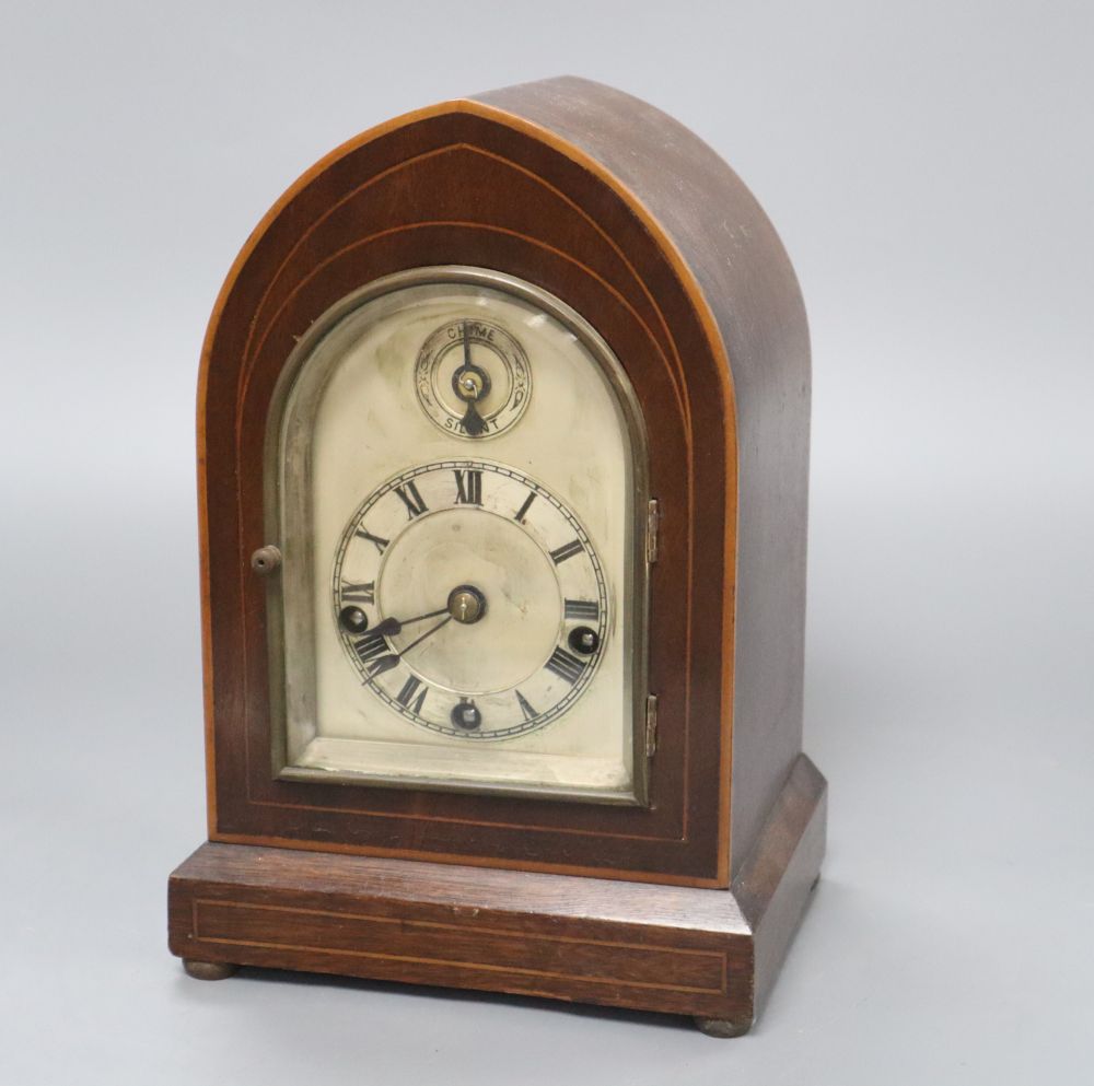 An Edwardian mahogany mantel clock, height 25cm