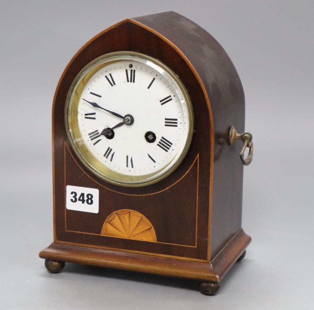 Lot 348 , An Edwardian lancet shaped inlaid mantel clock