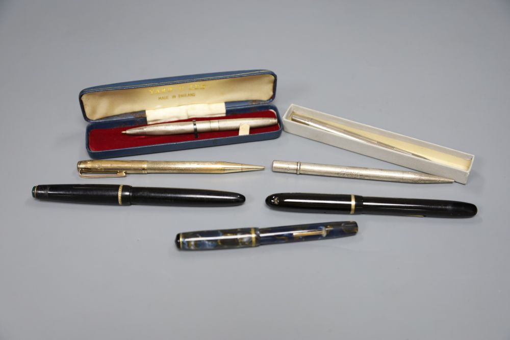 A Yard-o-lead, two silver and five other pens
