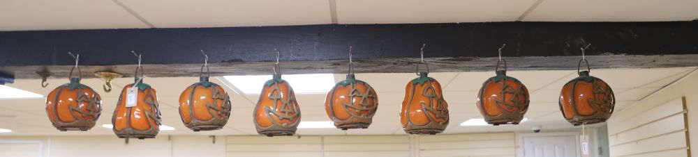 Lot 445A, A collection of eight vintage glass and painted metal Halloween pumpkin lanterns, various