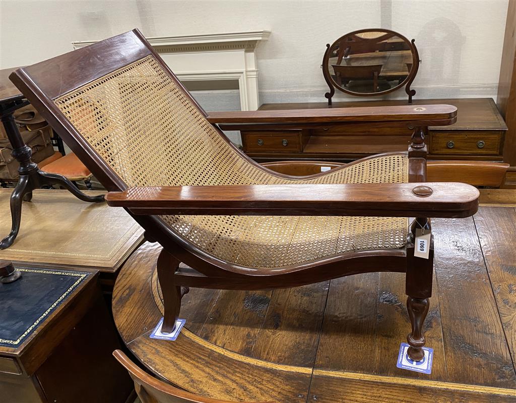 Lot 1069 , A caned hardwood plantation chair, width 70cm, depth 110cm, height 89cm