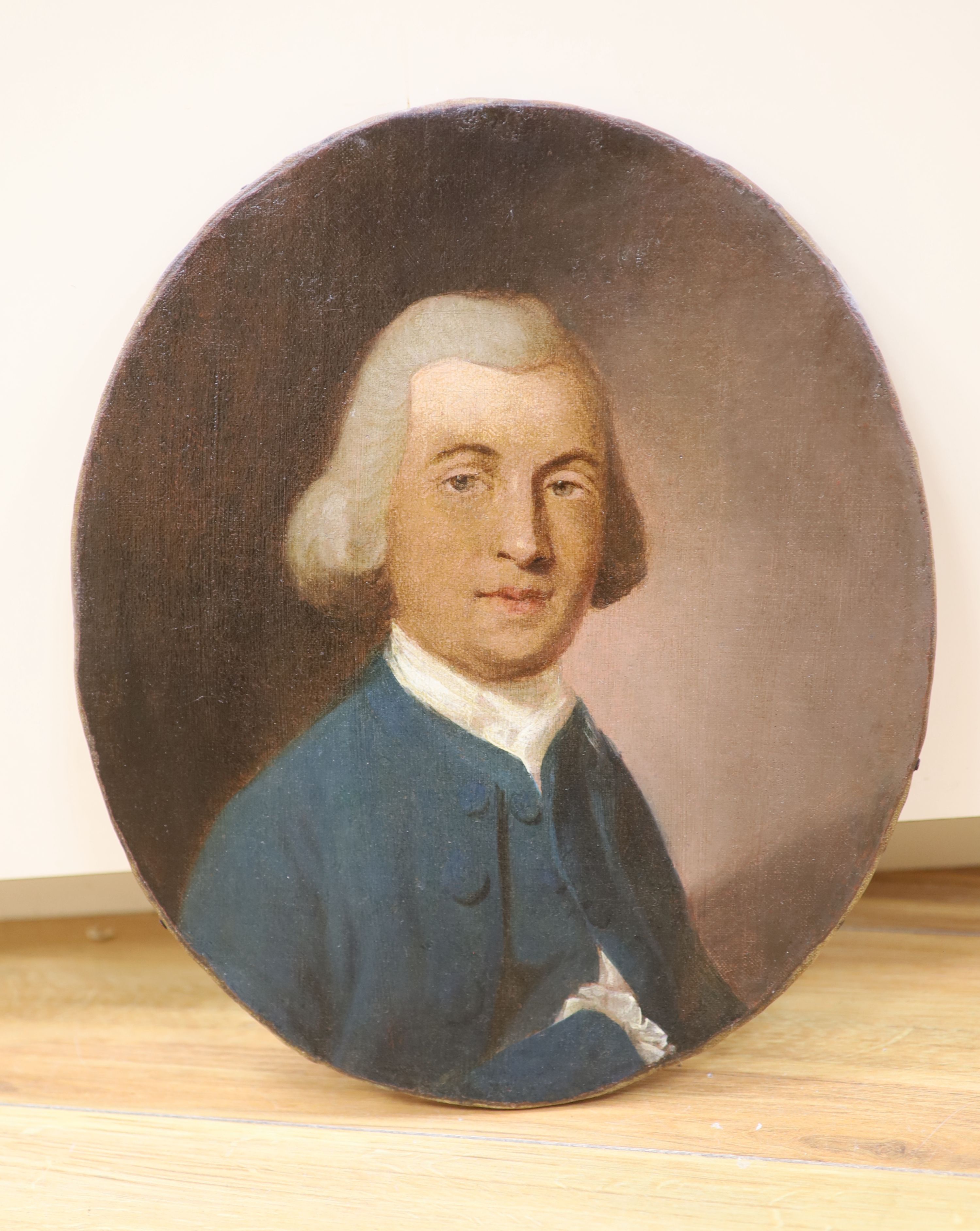 Portrait of a gentleman, oil on canvas, inscribed verso 'drawn by Mr M Wright of D. December 1774', 45 x 29.5cm, unframed