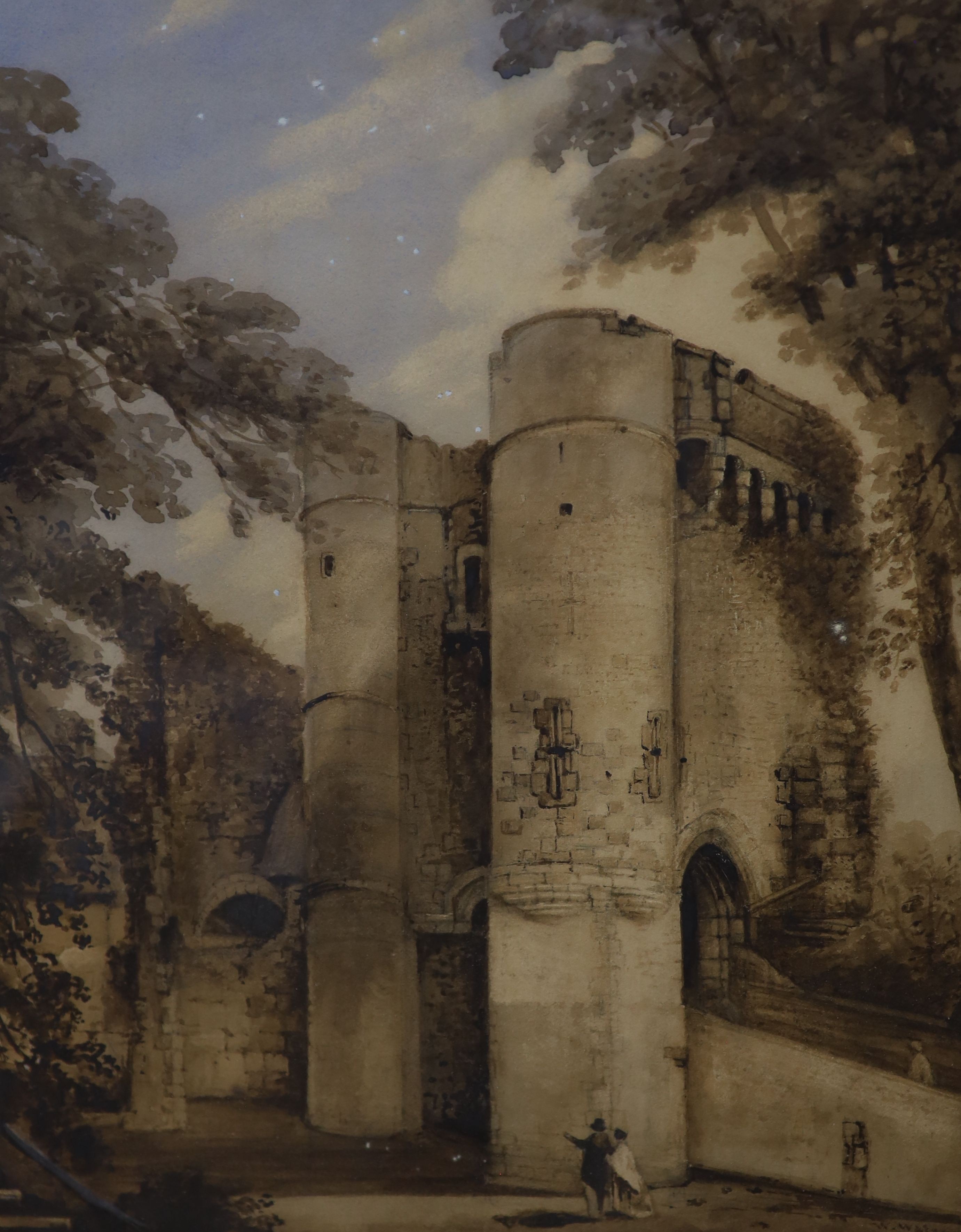 W. Watson (19th C.), Lewes Castle Barbican, With Visitors, signed and dated l.r. watercolour over pencil