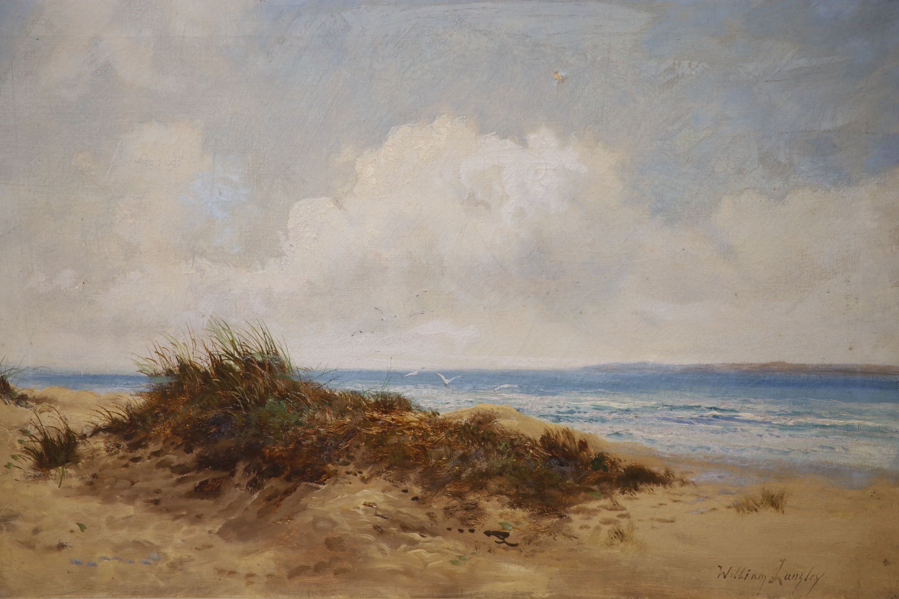 William Langley (1852-1922), oil on canvas, Sand dunes along the coast, signed, 50 x 75cm