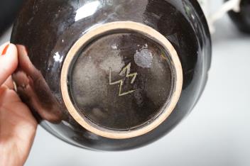 Lot 1373 , A Victorian loving cup and terracotta and sgrafitto jug and bowl maker’s mark M W