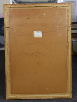 Watercolour on paper laid onto card which has slightly lifted free from the frame and is now lifting up down the left hand side, possibly slightly faded but still with good strength of colour, possibly one or two small dirt marks but overall looks good, under glass in a plain wood frame, label verso for the Trafford Gallery.