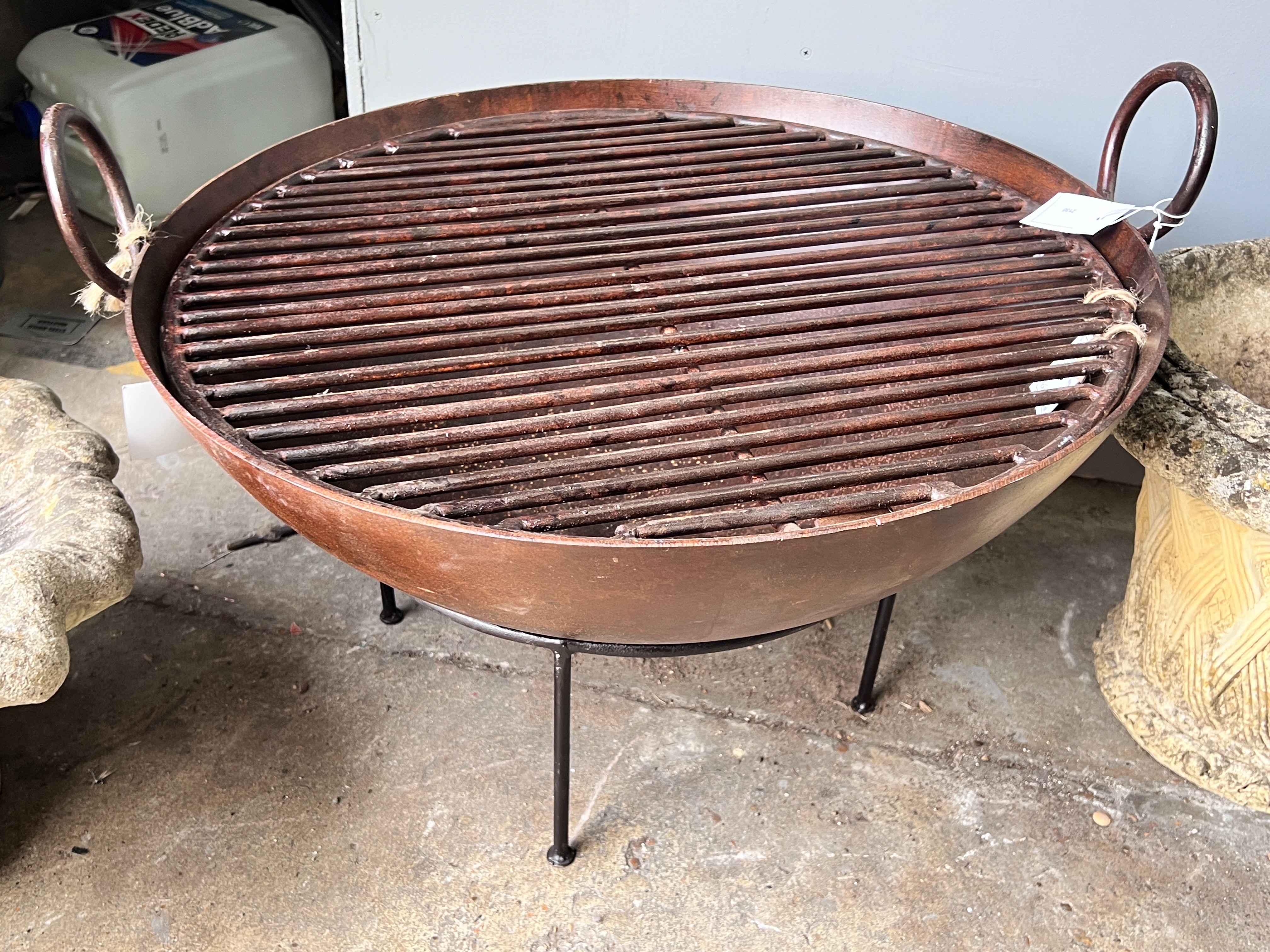Lot 2130 , A wrought iron circular fire pit on low stand, diameter 61cm, height 46cm