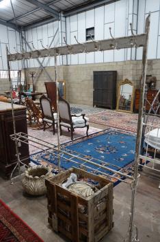 Lot 1093 , A vintage wrought iron coat and stick stand, width 200cm, height 206cm