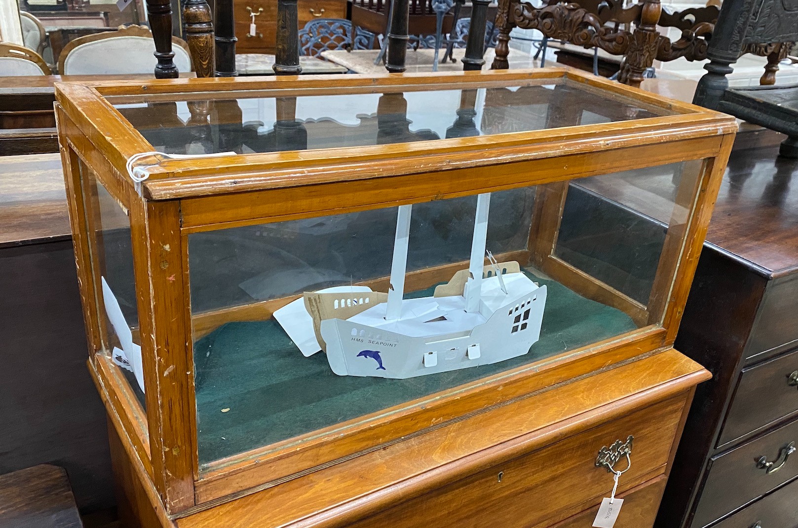 A rectangular glazed table top display case, width 90cm, depth 39cm, height 42cm