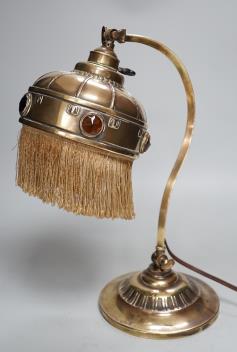 Lot 1251 , An adjustable Arts and Crafts brass and ‘jewelled’ table lamp, 34cm