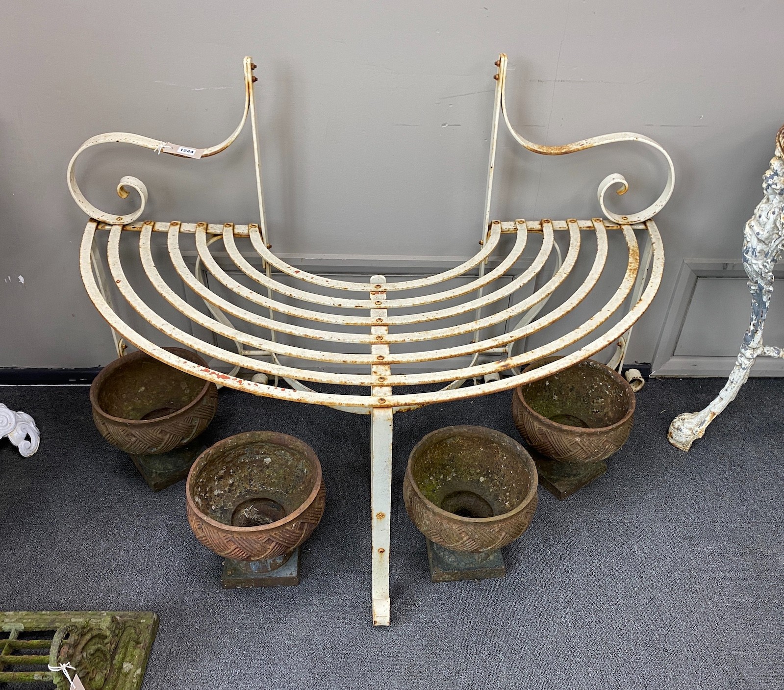 A painted wrought iron garden tree seat, width 120cm, depth 60cm