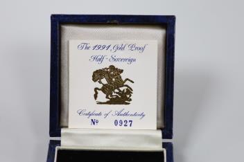 Lot 1955 , An Elizabeth II 1991 gold proof half sovereign, with box and certificate.