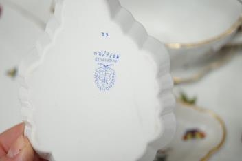 A group of Herend Rothschild 'birds' pattern decorative wares, and two Herend fruit pattern toast racks