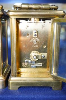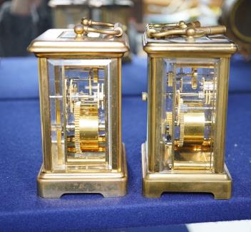 Lot 454 , Two late 19th century French brass cased carriage timepieces, largest 11cm high. Condition - good, unchecked if working