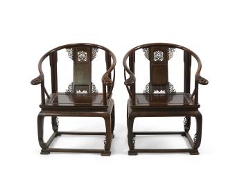 Lot 209 , A pair of Chinese jichimu horseshoe shaped armchairs and a matching table, 19th/20th century
