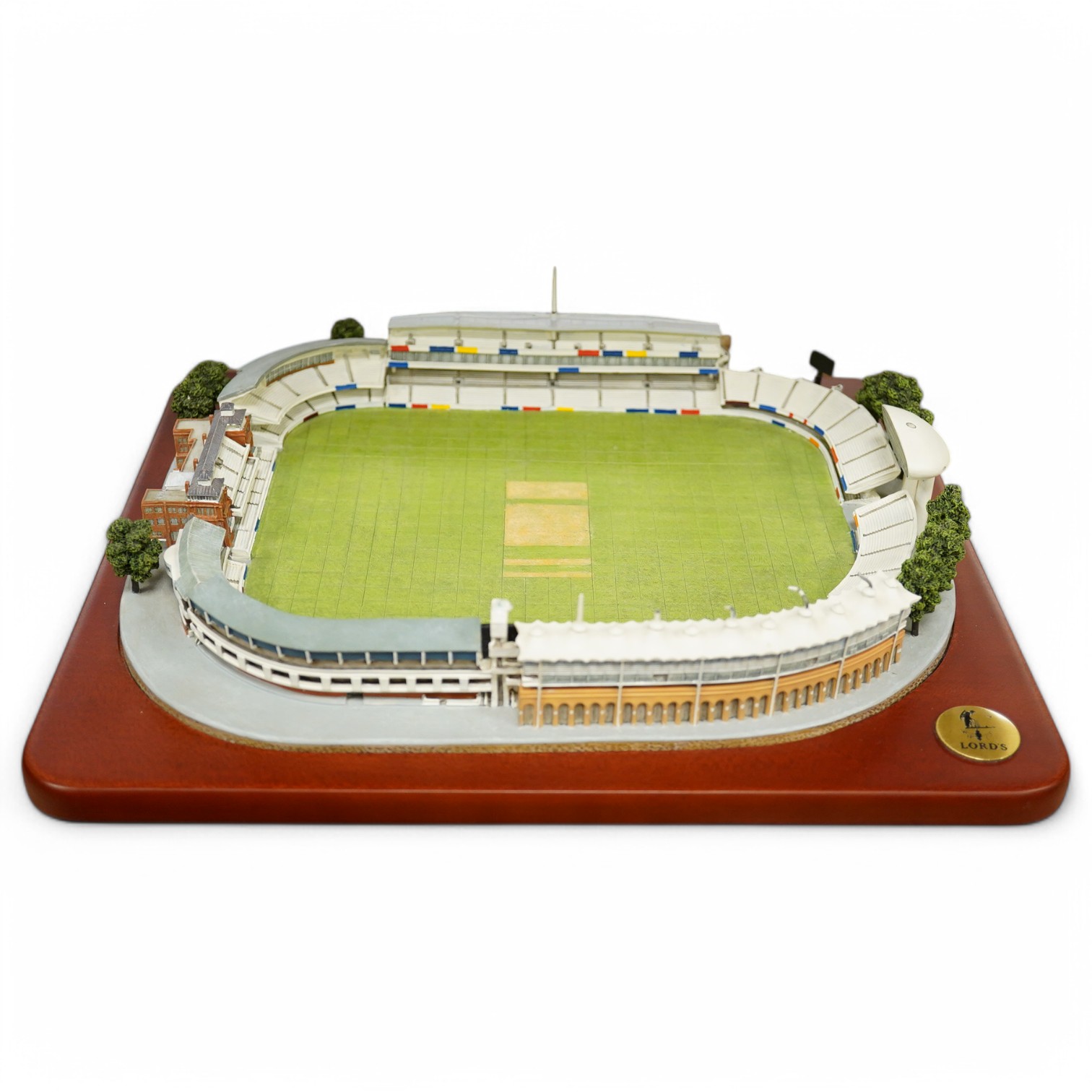 A Danbury Mint model of Lords cricket ground by Alan Mynall, with COA, 32cm wide. Condition - fair some minor losses