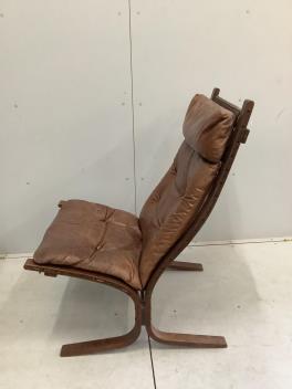 An Ingmar Relling leather chair, width 62cm, depth 66cm, height 98cm and footstool, Siesta
