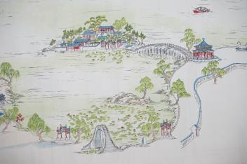 Lot 485 , Two Chinese hand coloured scroll prints of Beijing Summer Palace, unframed. Condition - rips and creases to the edges