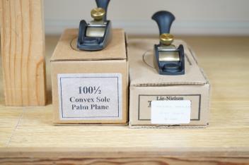Lot 2281 , Two boxed Lie Nielsen Toolworks miniature planes; a model makers flat sole plane (L-N 100), together with a convex soul palm plane (L-N 100 1/2), both with paperwork