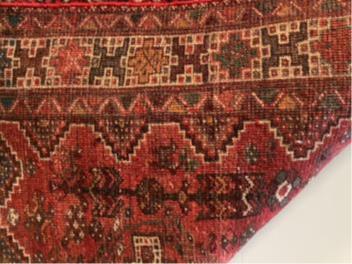 Lot 134 , A Hamadan red ground rug, 196 x 154cm. Condition - poor to fair