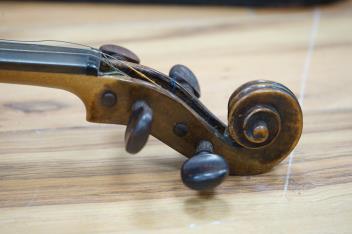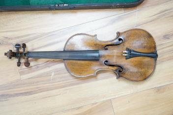 Lot 481 , A cased 19th century French violin, back, 36cm. Condition - fair