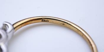 Diamonds bright and lively, attractive ring in good condition, some minor surface wear, hallmark partially obscured.
