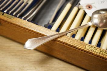 Lot 1477 , A canteen of Mappin and Webb silver plated cutlery with ivorine handles. Condition - fair