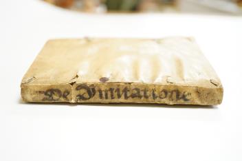 ° Riccius, Bartholomeaues - De Imitatione libri tres ad Alfonsum atestium principem suum in literis alumnum Hercules II. (?3rd edition) engraved title device, decorated initial letters, 104ff.; old vellum, 16mo. Paris: Bernardus Turrisanus, 1557. * Ferrara humanist; he published a Latin dictionary