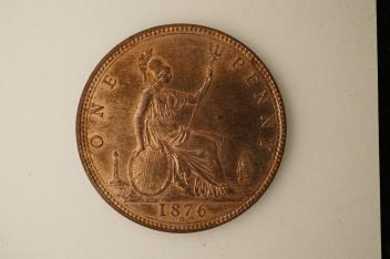 Lot 2017 , British coins, Victoria, three bronze pennies;, 1876, H below small date, Fr. 89, Gouby dies L/m, good EF, much lustre, 1877, Fr. 91, Gouby dies L/k, spotting and die clash to obv. otherwise crisply struck near UNC, much