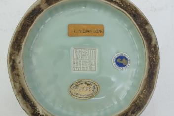 Lot 116 , A Chinese celadon glazed brushwasher, Qianlong mark but later