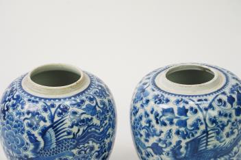 Lot 82 , A pair of Chinese blue and white ‘phoenix’ jars, Kangxi period