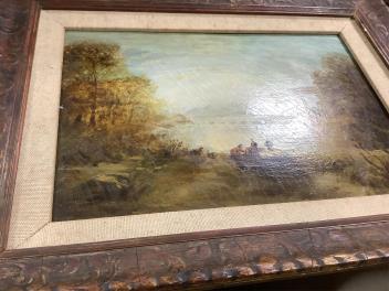 Some paint re-touches, particularly at top-centre area; unsightly diagonal craquelure, clearly visible.