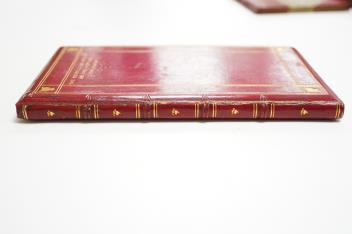 Lot 1335 , [Hawkes, John] The Meynellian Science; or, Fox-Hunting upon the System. (2nd edition). earlier 20th cent. gilt ruled red pictorial calf, gilt decorated panelled spine, ge. and marbled e/ps., gilt tooled board edges (by H
