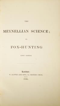 ° [Hawkes, John] The Meynellian Science; or, Fox-Hunting upon the System. (2nd edition). earlier 20th cent. gilt ruled red pictorial calf, gilt decorated panelled spine, ge. and marbled e/ps., gilt tooled board edges (by Hayday), sm.cr.8vo. W. Clowes and Son, 1848