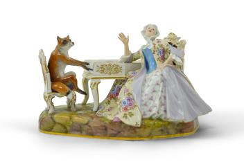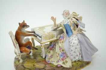 Lot 23 , A Meissen group of a fox at the piano and a lady listening, after J. J. Kandler, late 19th century