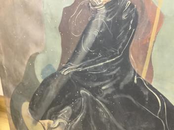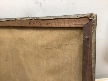 Lot 773 , Edith Early, Surreal portrait of a lady, signed verso, oil on canvas, 91 x 91cm, unframed
