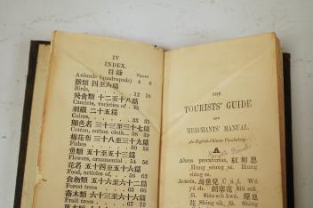 Lot 1336 , The Tourists' Guide and Merchants' Manual. Being an English Chinese Vocabulary of Articles of Commerce and of Domestic Use ... old binder's gilt ruled cloth, tall slim 8vo. Hong Kong: The "Daily Press", 1864