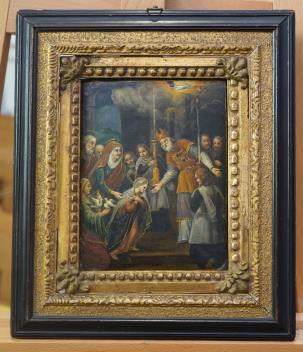 Lot 157 , Continental School, 17th century, Religious Scene with Bishop, Saints and Christ as a Child