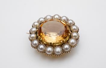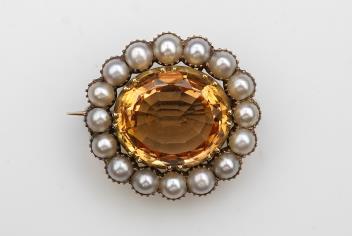 Lot 402 , A Victorian topaz and pearl brooch, late 19th century
