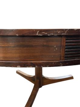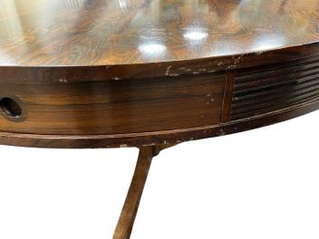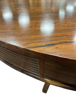 Robert Heritage (1927-2008) for Archie Shine: A 'Bridgford' rosewood drum dining table, the circular top with four drawers to the frieze, between reeded infills, on pedestal base with tripod base, 72cm high x 143cm diameter