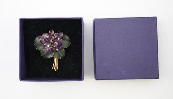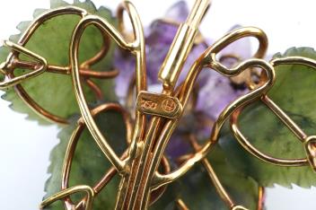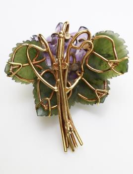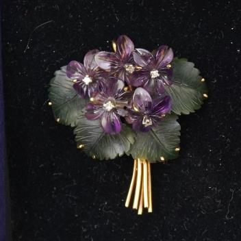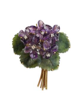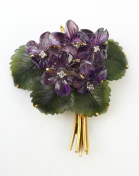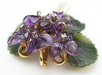 Lot 598 , An amethyst, nephrite and diamond brooch, mid 20th century