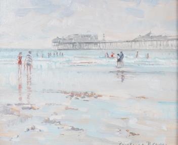 Lot 1722 , Pauline Brown (b.1926), ‘Low tide, Palace Pier, Brighton’, signed, label verso, oil on board, 11.5 x 14cm