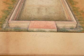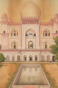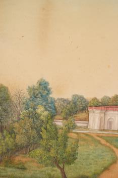 Lot 1 , Indian School , (first half 19th century), Safdarjang's tomb, New Dehli, Gouache miniature painting, image 28cm x 56.2cm, staining