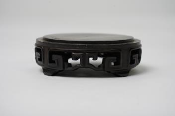 There is a small but deep scuff to the glaze on the shoulder with some staining to the area, otherwise in good condition with no restoration, chips or cracks detected. The wood stand has possibly been glued reglued in one area.