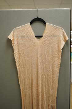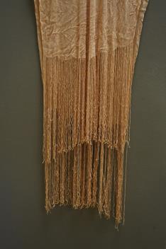 Lot 316 , A 1920’s-30’s silk stockinette fringed ladies open sided knitted tabard, sides 56cm long not including fringe. Condition - front point of V slightly worn.
